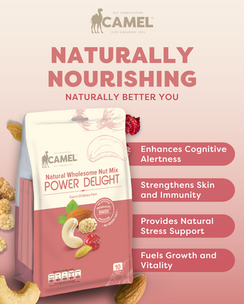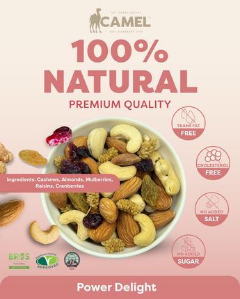 Camel Nuts Power Delight is a delicious and wholesome blend of crunchy nuts and sweet dried fruits, crafted to give you both energy and flavor in every bite. Packed with essential vitamins, minerals, and fiber, this nutritious mix is perfect for fueling busy days, workouts, or outdoor adventures. Conveniently portioned for on-the-go snacking, it’s a smart choice for anyone seeking a balance of taste and nourishment. Freshly packed for quality, Camel Nuts Power Delight delivers a satisfying burst of natural goodness with every handful.