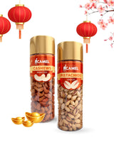 Inside, you'll find a powerhouse of protein and flavour: one bottle holds creamy, premium Roasted Cashews, providing that rich, buttery bite. The other is filled with highly flavourful Baked Pistachios, offering a contrasting crunch and rich, savoury taste. This duo is pure nut perfection!