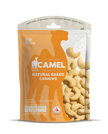 Discover the rich creamy taste and satisfying crunch of Camel Nuts Natural Baked Cashew Nuts, one of our best sellers. Expertly baked without oil or additives, these premium cashews retain their natural flavor and nutritional benefits. A great source of plant based protein, fiber, and essential minerals such as iron, zinc, and B vitamins, they are heart healthy and nourishing. Very low in sodium, trans fat free, and cholesterol free, they are perfect for snacking, meal prepping, and adding to trail mixes, salads, or stir-fries. Learn more about Cashews.