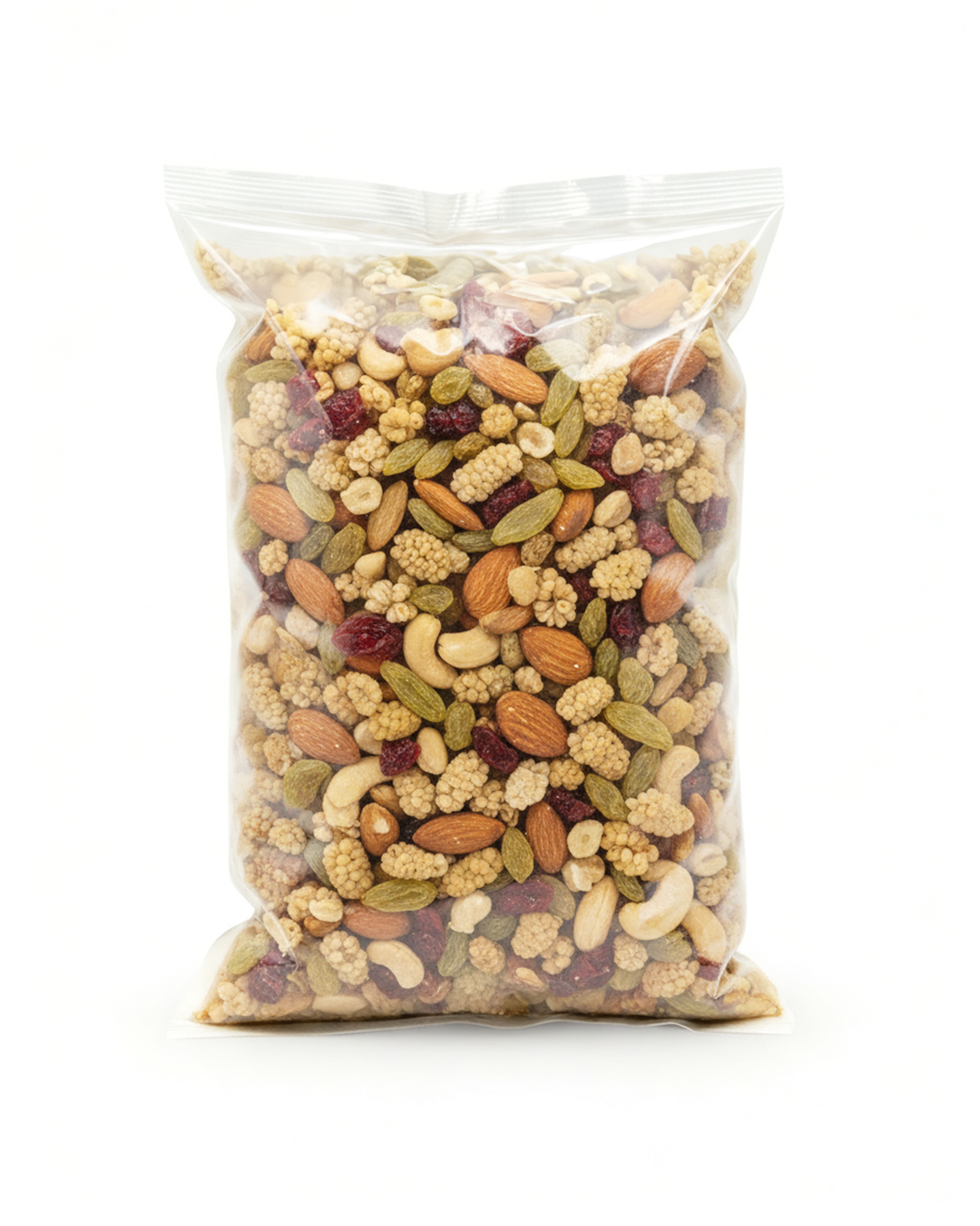 Ingredients: Cashews, Almonds, Mulberries, Raisins, Cranberries and Preservative (E220).