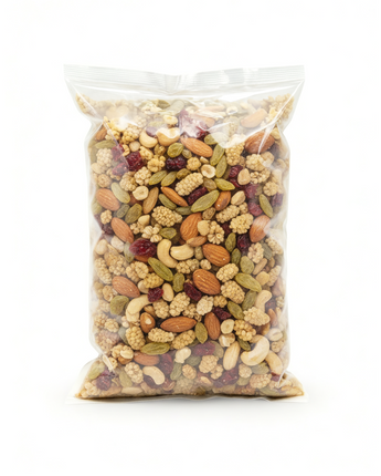 Enjoy the wholesome blend of Camel Nuts Natural Nutty Berries, a mix of roasted cashews, crunchy almonds, juicy mulberries, plump raisins, and tangy cranberries. This Halal-certified, vegetarian-friendly trail mix is packed with protein, fiber, and antioxidants, making it a nutritious option for sustained energy and everyday snacking. Naturally cholesterol-free and trans-fat-free, it’s perfect for on-the-go munching, at work, or as a healthy boost to breakfast bowls and salads. Freshly packed for quality and taste, Camel Nuts Natural Nutty Berries deliver flavor and nourishment in every bite.