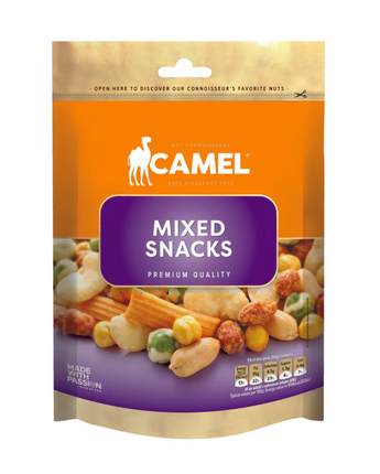 Camel Nuts Mixed Snacks bring together the perfect blend of crunchy, savory, and satisfying flavors in one delicious pack. Featuring premium peanuts, crispy broad beans, green peas, chickpeas, and more, this mix offers variety and texture in every bite. Packed with plant-based protein, fiber, and essential nutrients, it’s a smart way to stay energized throughout the day. Freshly packed for quality and taste, Camel Nuts Mixed Snacks are ideal for on-the-go munching, movie nights, or casual gatherings, delivering wholesome crunch and flavor with every serving.