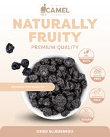 Camel Nuts Natural Dried Blueberries deliver a naturally sweet and tangy berry experience, made with pure dried blueberries and no added sugars or preservatives. Rich in plant-based antioxidants and a good source of fiber, these vibrant berries are perfect for topping breakfast bowls, mixing into baked goods, or enjoying as a wholesome snack on the go. Naturally cholesterol-free and trans fat-free, Camel Nuts Natural Dried Blueberries are a nutritious treat that supports a balanced lifestyle while adding color and flavor to your pantry staples.
