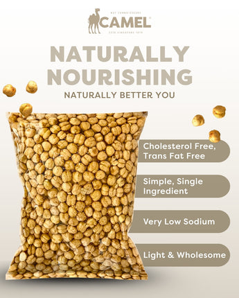 Enjoy the wholesome goodness of Camel Nuts Roasted Grams, a naturally protein-rich and fiber-packed snack made from carefully selected premium legumes. Expertly roasted to perfection, they deliver a light, crispy crunch without added oils or artificial ingredients. Naturally cholesterol-free, trans fat-free, and very low in sodium, these Halal-certified and vegetarian-friendly grams are a smart choice for guilt-free snacking. Perfect for on-the-go energy, sharing with friends, or adding to your pantry, Camel Nuts Roasted Grams combine taste, nutrition, and crunch in every bite.