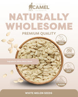 Camel Nuts White Melon Seeds are crunchy, nutritious, and incredibly versatile, making them a delicious way to add texture and nourishment to your diet. Enjoy them straight from the bag as a wholesome snack, or sprinkle over granola, yogurt bowls, salads, and baked goods for an extra crunch. With their mild, nutty flavor, these premium seeds are perfect for enhancing both sweet and savory recipes. Packed with natural goodness, Camel Nuts White Melon Seeds are a pantry essential for health-conscious snackers and creative home cooks alike.